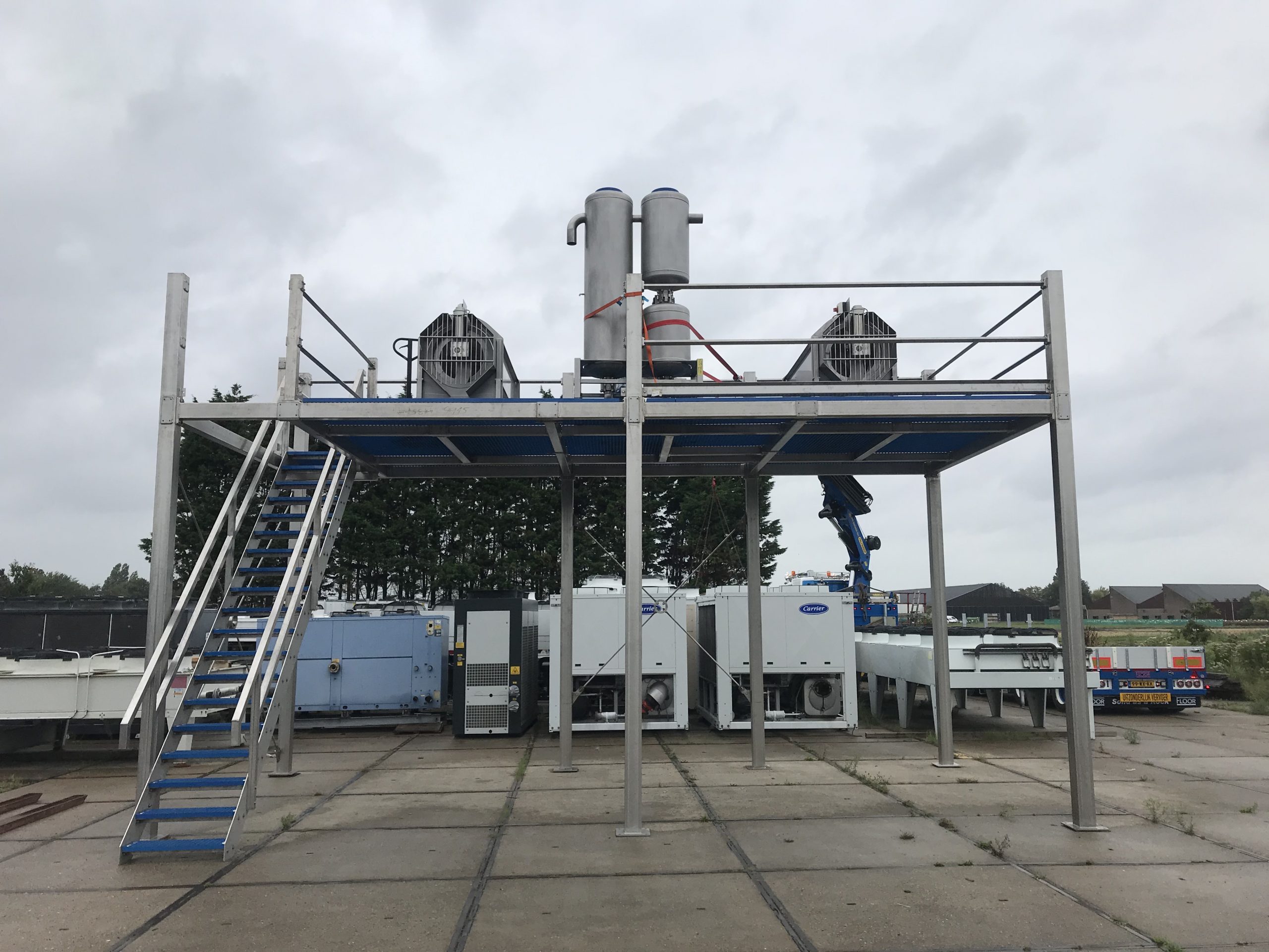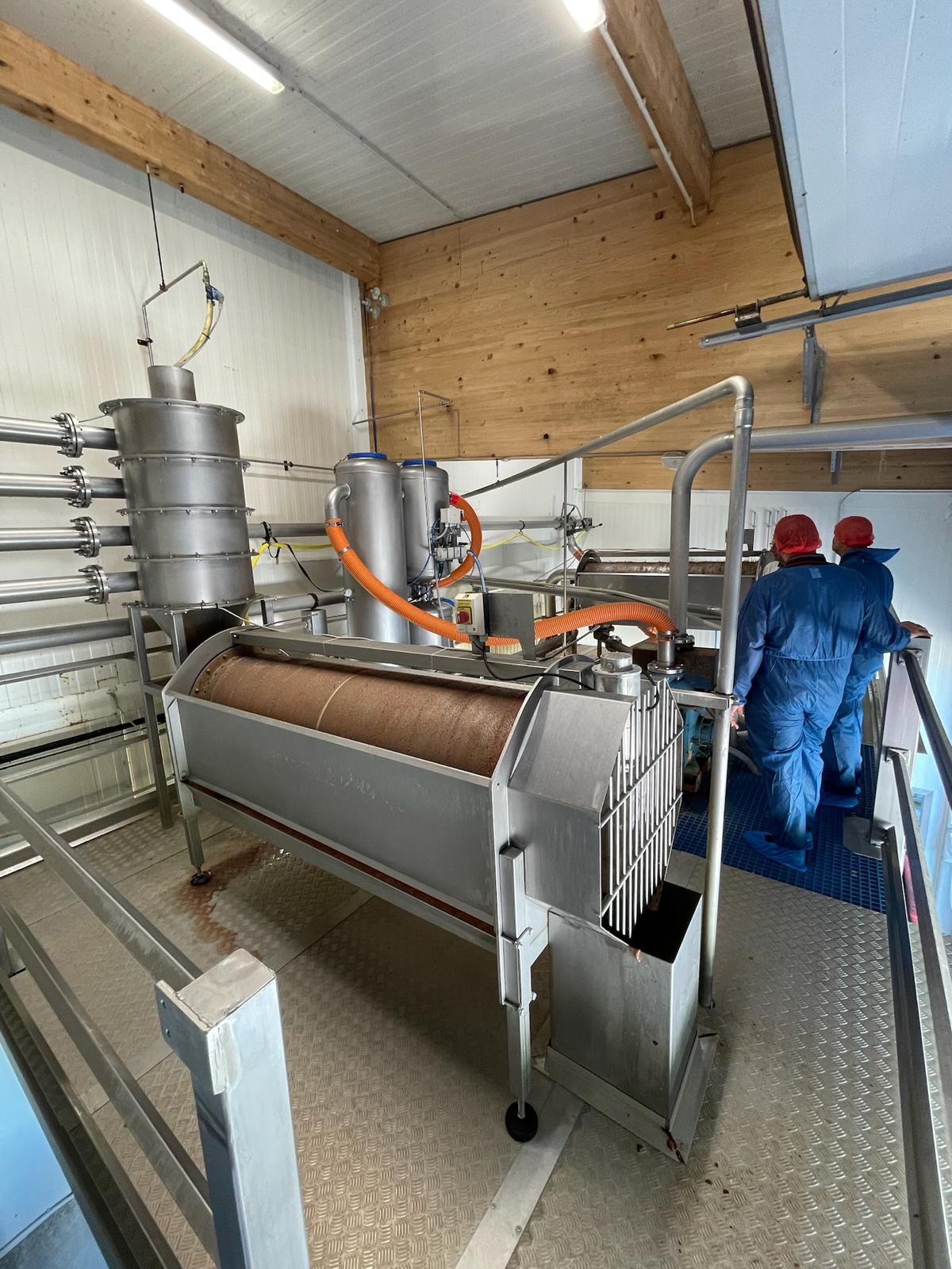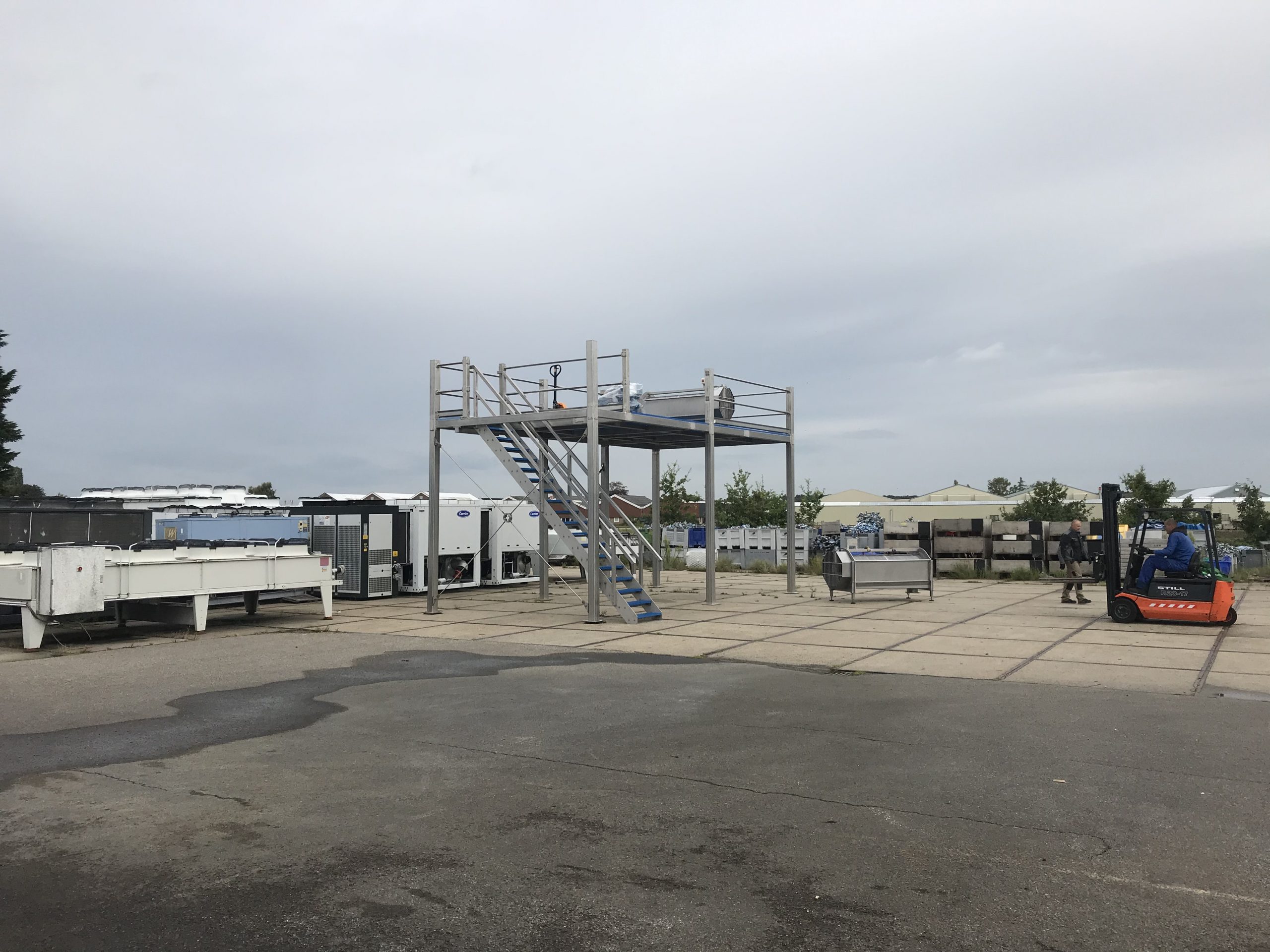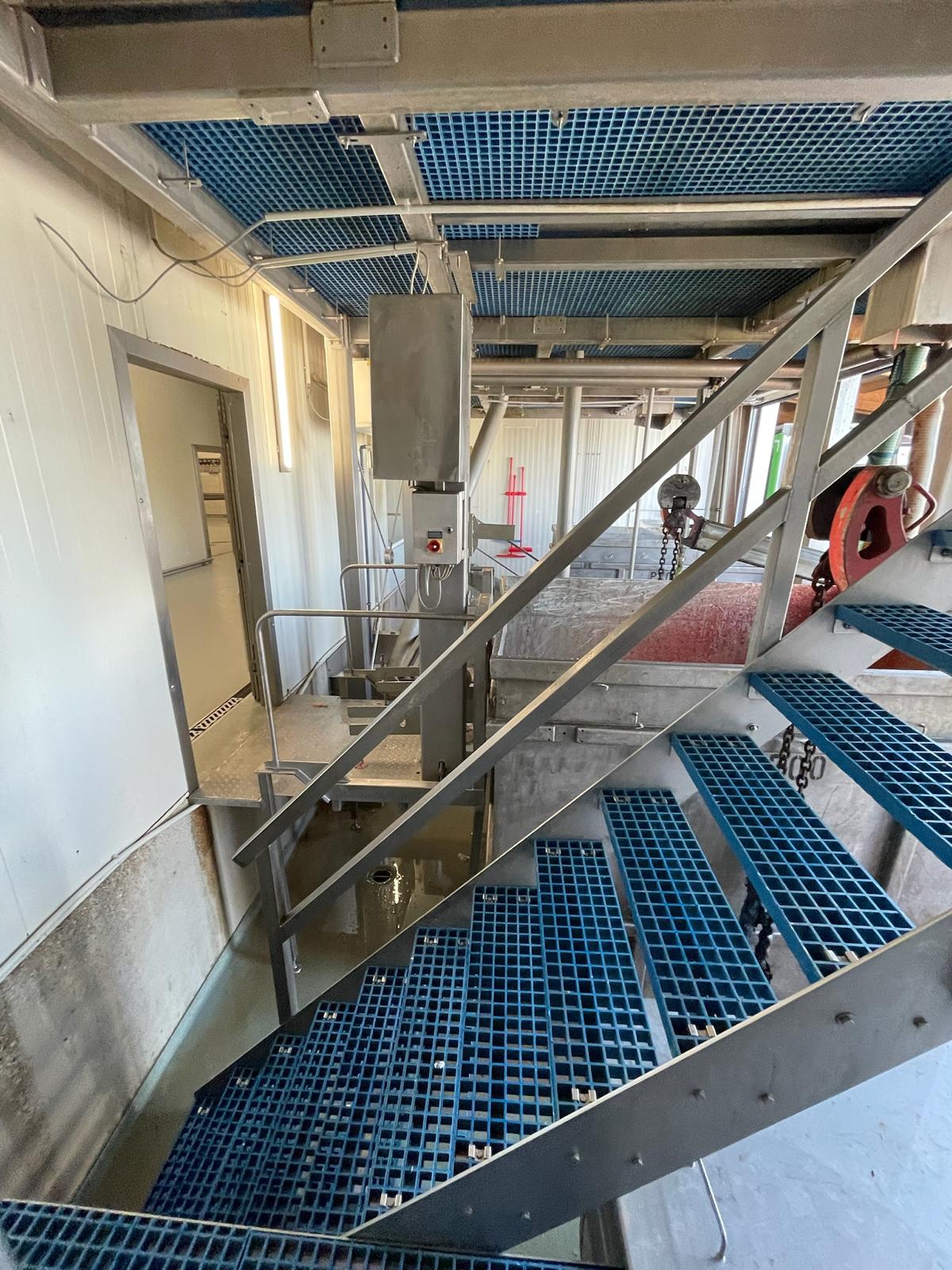Poultry waste handling system Poultry waste handling system consists of the following components: Feather pump Rotating feather separator Rotating soft offal separator Vacuum offal transport system Pneumatical blood pump Dry offal transport system See below for more details Quantity: No models found Add to Quote View details Poultry waste handling system For a customer in Europe Dutch Poultry Tech has designed and manufactured a poultry waste handling solution which allows the customer to collect feathers from broilers and ducks and viscera, heads and feet separately. The system gives the customer the flexibility to choose between outside disposal of all poultry waste or re-use of the duck feathers for the production of pillows and soft offals as a potein source for the pet food industry. A rotating feather separator, soft offal separator and vacuum installation are all mounted on top of stainless steel raised platform to enable discharge of the feathers and soft poultry waste into offal collection containers placed below the rotating separators. Excess water discharged from the bottom of the feather separator is recirculated back to the floor drain in the slaughterhouse running beneath the plucking machines. Transport of the wet feathers takes place by means of a feather pump which is placed at the end of the floor drain receiving both feathers mixed with water from the plucking machines. Heads and feet are crushed first and then blown by means of compressed air to the soft offal separator mounted on top of the raised platform. The viscera are also blown by means of compressed to the soft offal separator. The residual waste from the cavity of the carcase is transported by means of vacuum from the Final Inspection Machine to the vacuum collection tank mounted on top of the platform. And finally blood is blown by means of compressed air from the blood trough to the poultry waste collection bin positioned below the soft offal separator. Poultry waste handling system consists of the following components: Feather pump Rotating feather separator Rotating soft offal separator Vacuum offal transport system for lungs and blood consisting of a 15 kW vacuum pump, water tank, 300 L stainless steel buffer tank and 200 L stainless steel collection tank and 100 L stainless steel blow tank equipped with pneumatically operated valves mounted on a skid Blood pump, pneumatically operated Head and feet crusher mounted on stainless steel blow tank including control panel Stainless steel blow tank for transport of viscera including control panel See the process from start till end: