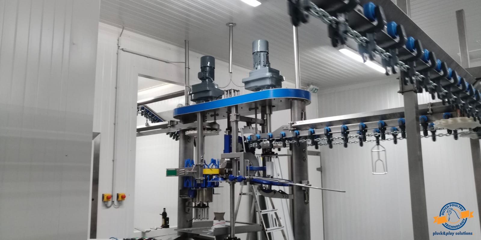 Poultry rehanger kill – evisceration Video 1 Compact rehanging machine to rehang birds from the killing line to the evisceration line. Shackle pitch according to customer requirements. Reduces risk at cross-contamination. Reduces personnel. Left or right turning variants possible. Quantity: No models found Add to Quote View details Rehanger kill – evisceration Compact rehanging machine to rehang birds from the killing to evisceration line. Automatic rehanging reduces the number of required line personnel as well as the risk at cross-contamination. Shackle pitch for in-feed en out-feed lines according to production requirements. Left or right turning variants possible. rehanger can be fitted between most existing kill and evisceration.