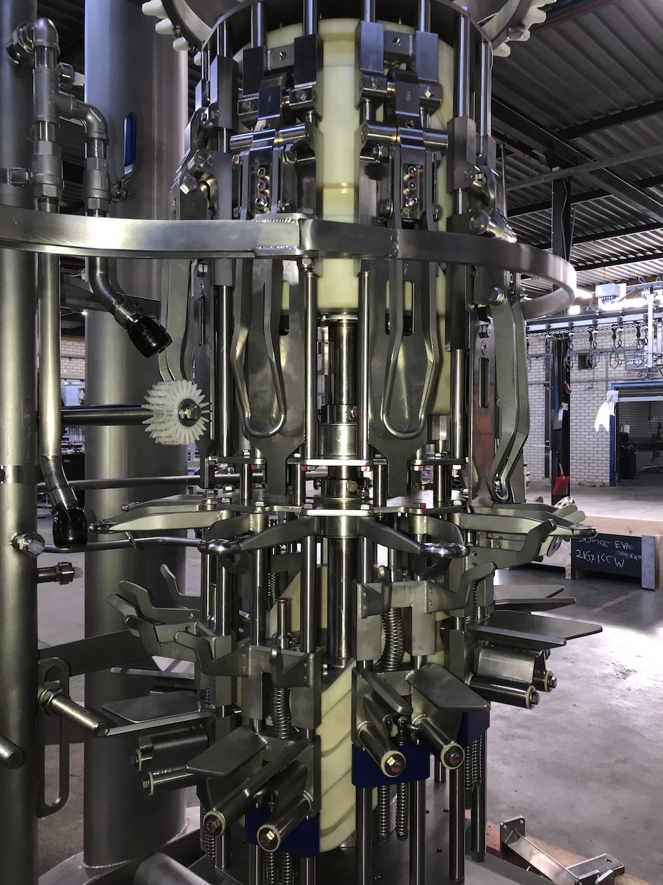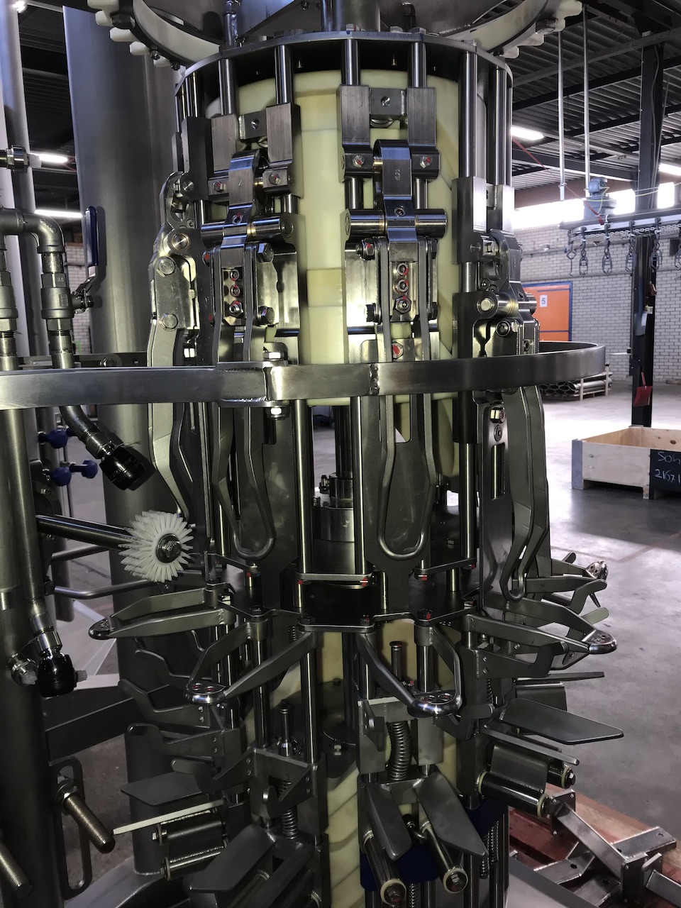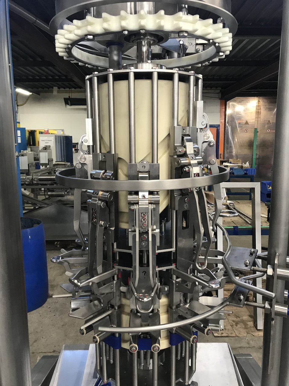 The automatic eviscerator is especially designed to remove the intestine package from the bird, without causing any damage to the organs or intestines. The evisceration spoon enters the carcass. After reaching the bottom of the cavity, the bracket turns and clamps the oesophagus. The spoon is removed from the bird and places the intestine package on the back of the bird to allow for veterinary inspection. Operators can remove hearts and lungs manually. Stomachs can be processed by a gizzard harvester and related machinery to obtain clean, peeled gizzards.