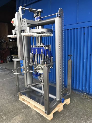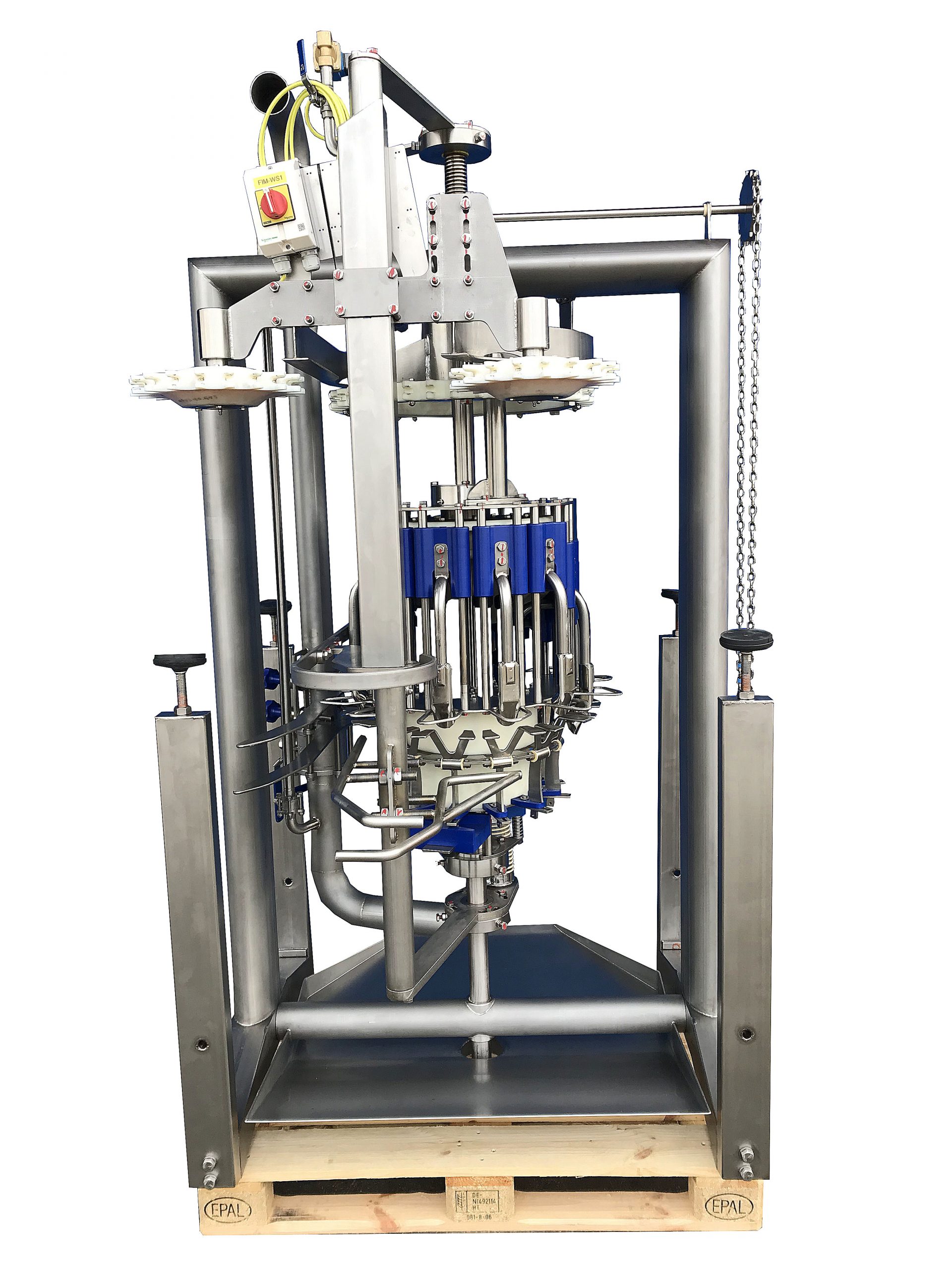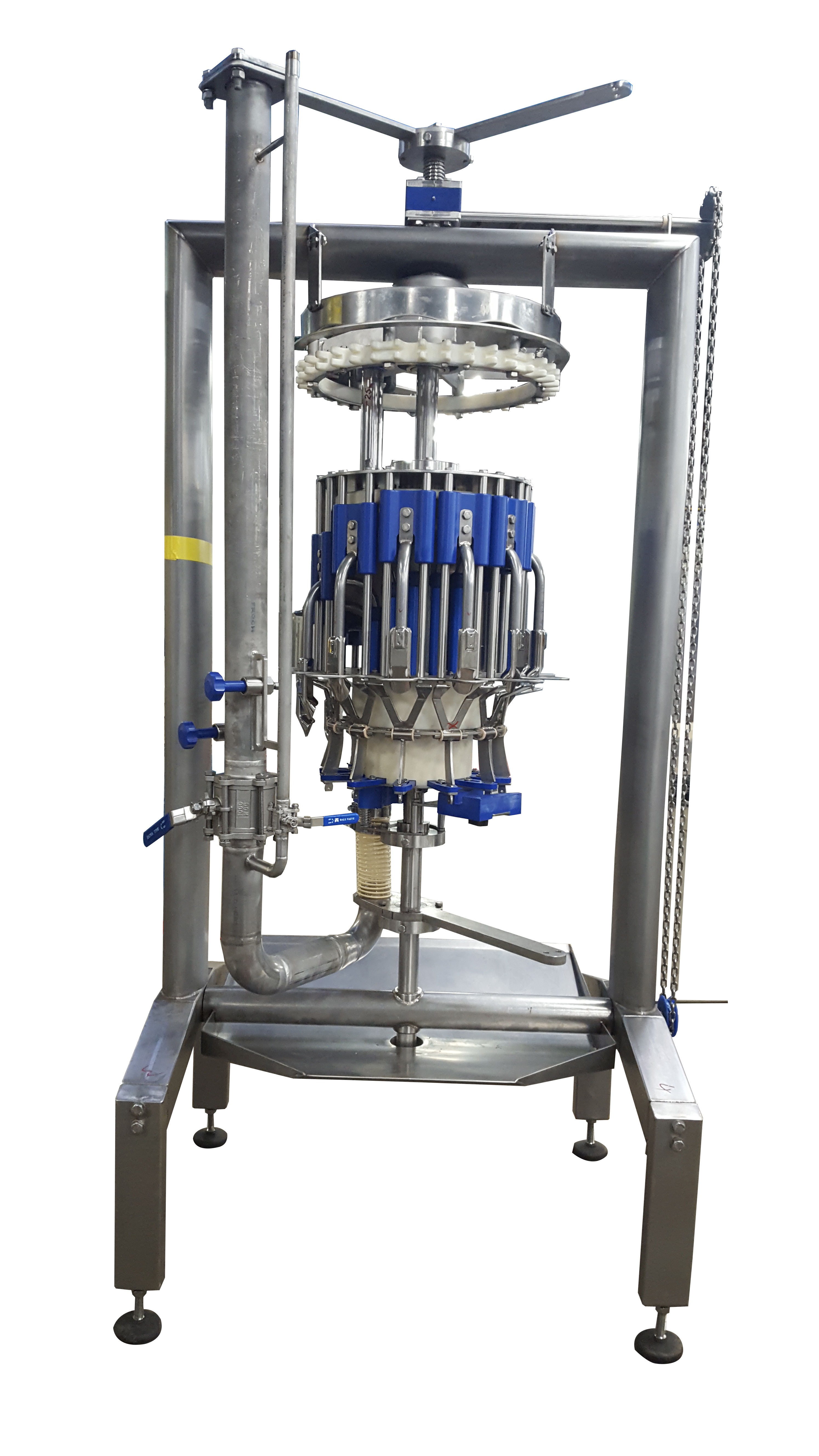 The final inspection machine is designed to clean the abdominal cavity of each carcass. Any remaining parts, such as lungs and other small residual tissues, are removed by a vacuum-powered suction head. The rotating machine holds up to 20 units. As each bird is conveyed through the machine, its suction units enter the birds’ cavity. Once the bottom is reached, the vacuum system activates and removes the birds’ lungs and other loose materials. After this task has been completed, vacuum is turned off and the units leave the carcass.