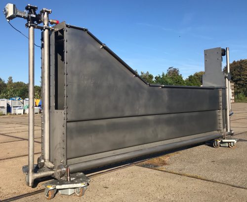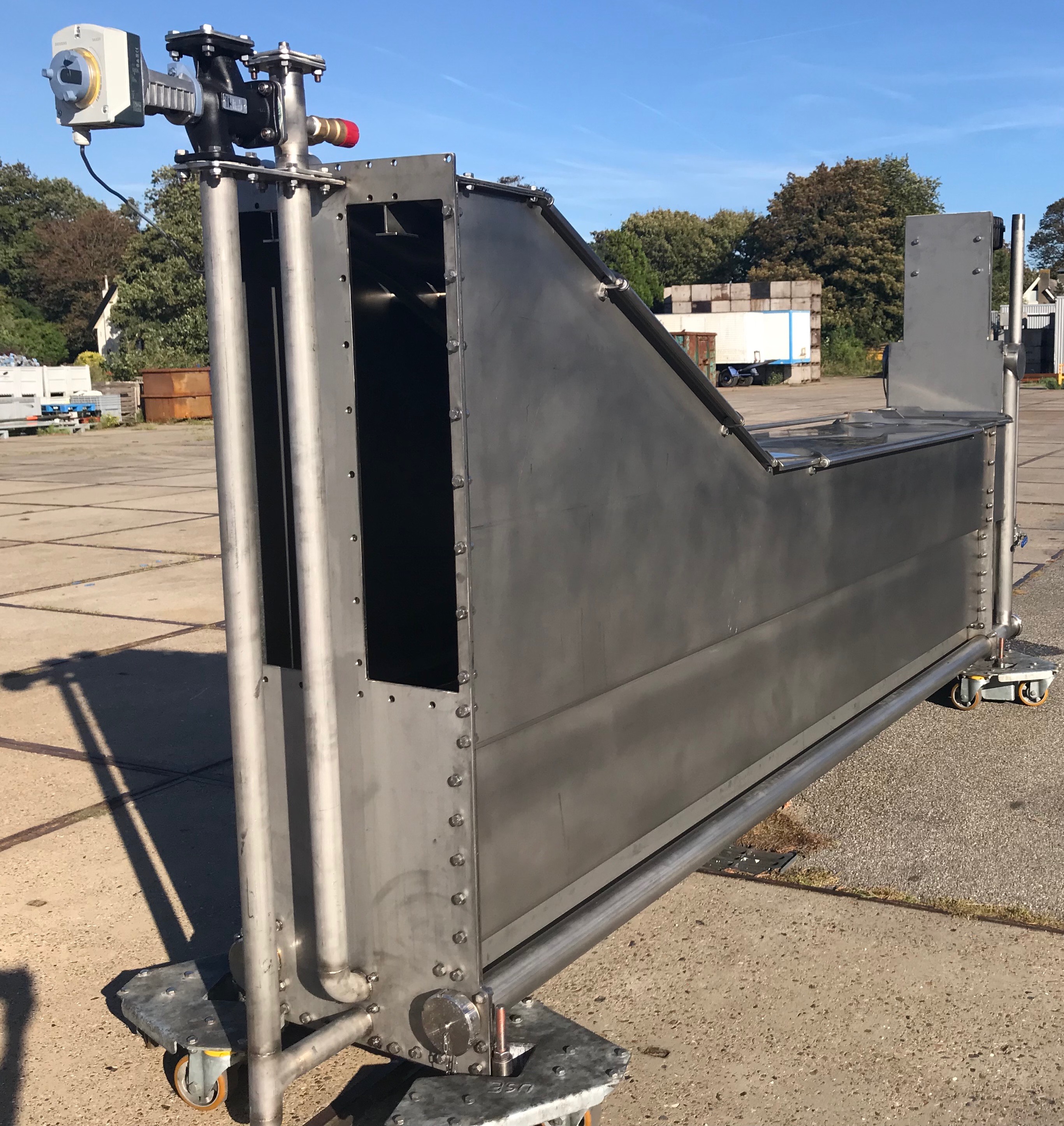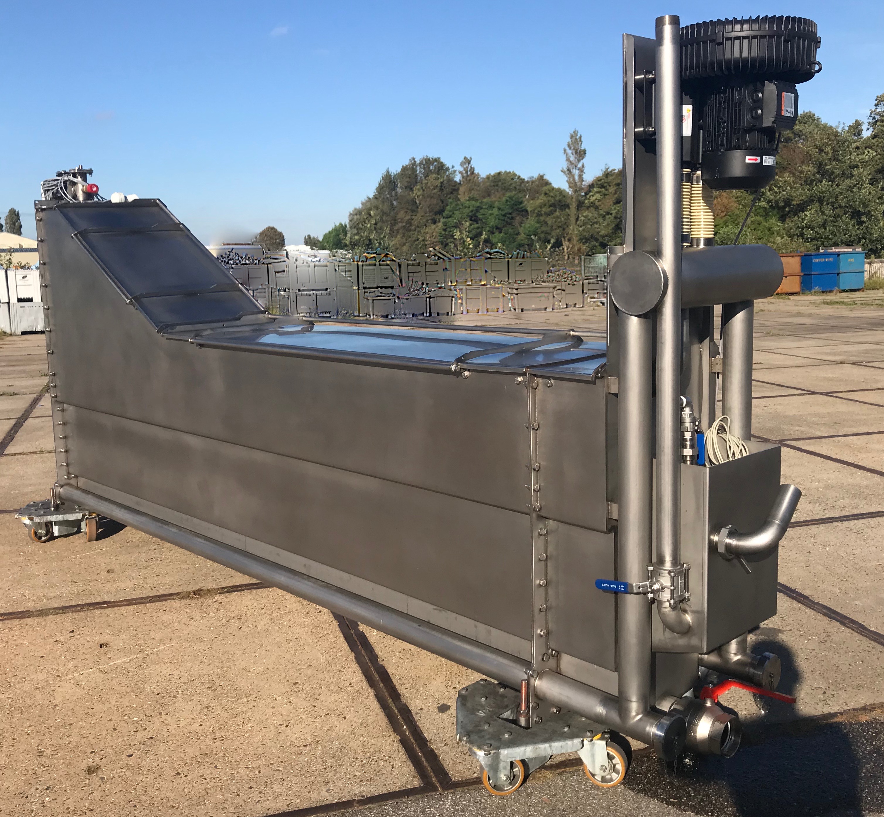 Before plucking and after the birds have bled out, the birds are conveyed through a water tank filled with hot, scalding water. Hence the name of the machine: scalder or scalding tank. The water is be heated by heating elements and functions to open the pores, help loosen the feathers from the skin. Blowers inside the tank will create turbulence in the water, meaning the birds are completely immersed and scalded.