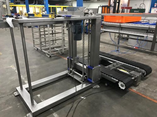 Crate Handling System Automated live bird crate handling Ideal for reducing number of staff required for handling and cleaning crates Including Crate stacking and destacking machines Presoak and crate washing machines to sanitize crates Model: Crate Handling System Quantity: Add to Quote View details View specifications Crate Handling System Full crate handling system Arrival table Conveyors, both straight and 90 degrees sections as required Crate (de)stacking machines Presoak and crate washer Open Crate Handling SystemCrate Handling System